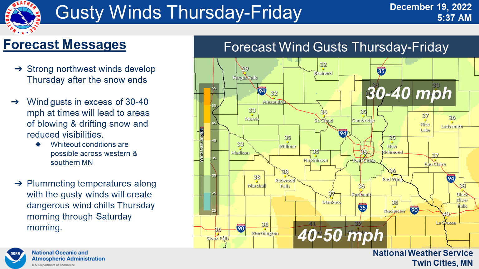 Thursday Night: A 30 percent chance of snow. Mostly cloudy, with a low around -7. Blustery, with a north northwest wind 15 to 20 mph, with gusts as high as 30 mph.