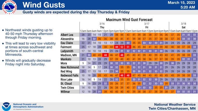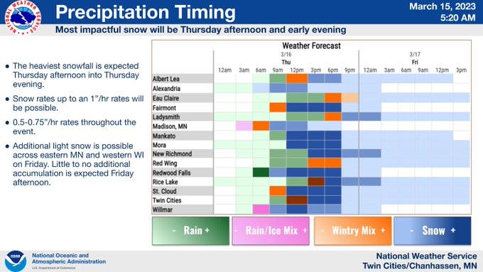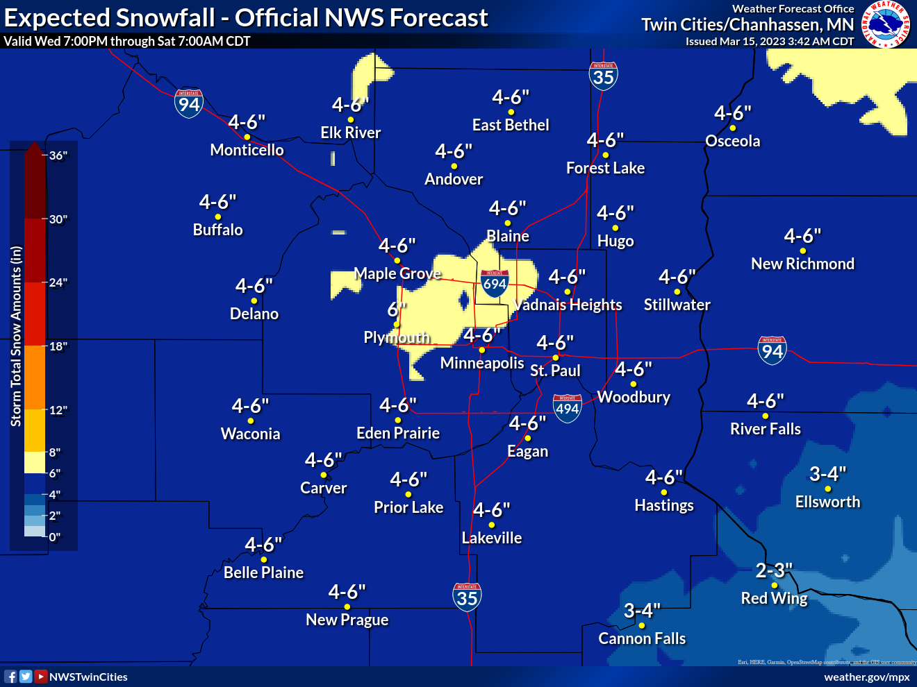 And here's the specific NWS forecast from the Minneapolis-St. Paul Airport: