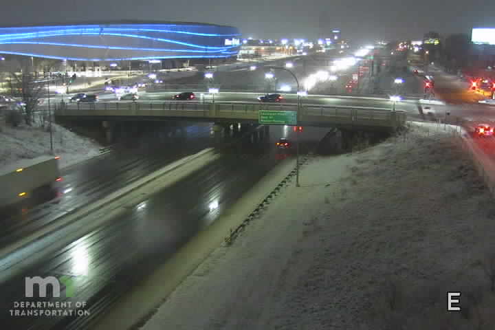 This image from a traffic camera shows the slick road conditions Thursday morning on Interstate 94 in St. Paul: