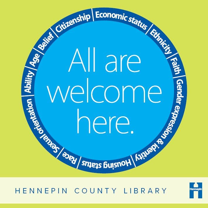 MINNEAPOLIS, MI — “All are welcome here.” With a sign at the doors of its 41 branches and on buttons worn by staff members, the Hennepin County Library is sending a warm message to all people that its doors aren’t closed to anyone.
