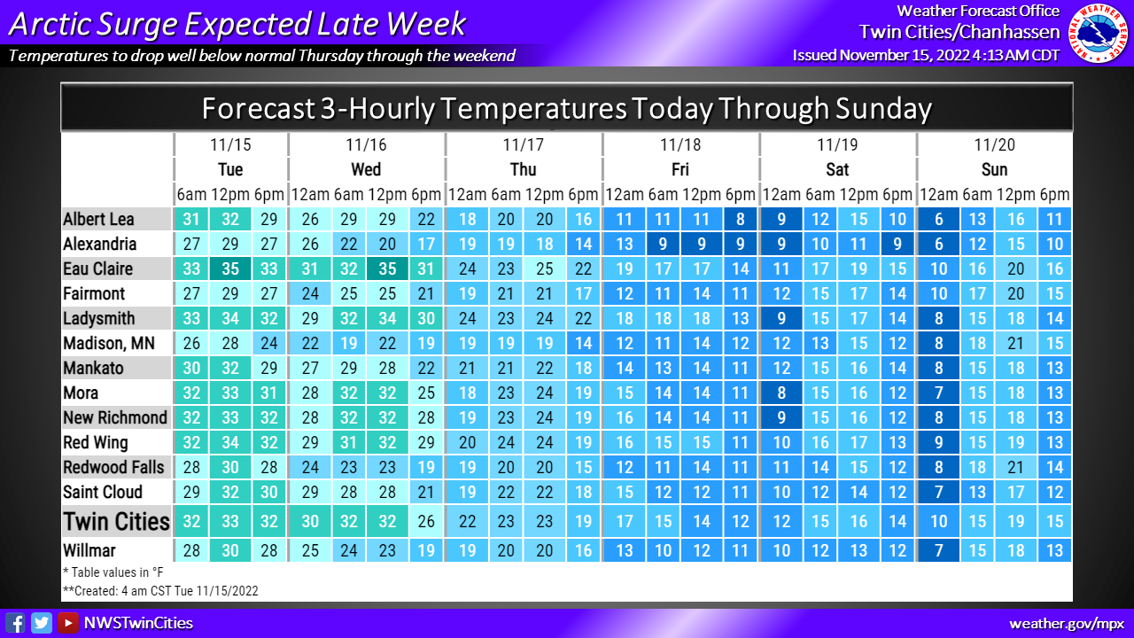 Here's the full NWS forecast from the Minneapolis-St. Paul Airport: