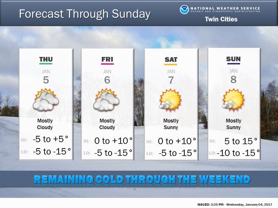 Cold temperatures and dry weather will be with us through the weekend. Temperatures will moderate early next week.