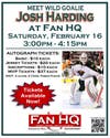 Minnesota Wild goalie Josh Harding will be making a very special personal appearance at Fan HQ in the Ridgedale Mall on Saturday, February 16th from 3:00-4:00pm.