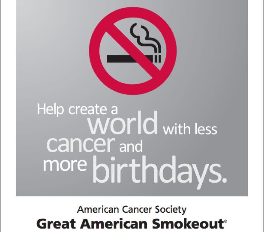 The Four Corners Partnership and Rice County Public Health Nursing Service want to remind everyone that the 37th Great American Smokeout will take place on Thursday, November 15, 2012. This annual event is sponsored by the American Cancer Society. The purpose of the Smokeout is to encourage smokers to quit.