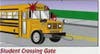 There is a new law requiring a CROSSING CONTROL ARM on school buses. This is different from the stop arm/stop sign that extends from the left side of the bus. This crossing control arm, or gate, must extend from the front right corner of the front bumper and must do so automatically when the bus stops with red signal lights in use. The purpose is to prevent children from crossing in front of the bus in the zone where the driver cannot see them.