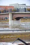 While the possibility of flooding downtown Northfield has waned slightly, water levels have reached the top of the river wall on the west side and the entire pedestrian walk has been closed. Standing water levels on the east side have reached approximately one foot.