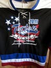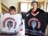 An on-ice gift exchange also took place before each game. The players gathered on the ice and swapped gifts such as hats, T-shirts, wallets, necklaces and hockey pucks, just to name a few. The adults also participated in the exchange, trading team jerseys and sweatshirts.