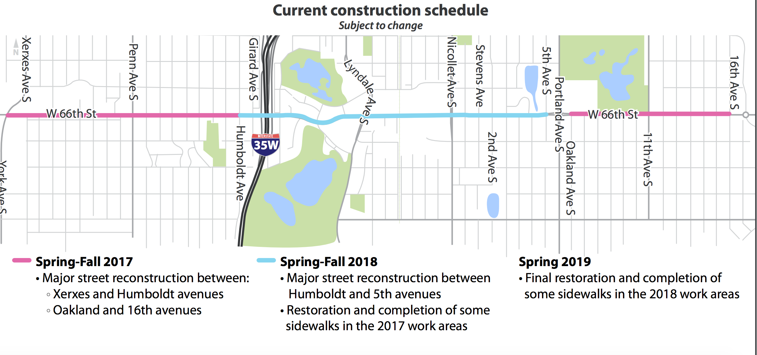 Metropolitan Council Environmental Services has been conducting regional sewer improvements along 66th Street. The final stage of work between approximately Lake Shore Drive and Clinton Avenue is expected to occur through spring 2017.