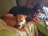 Well, I've been rebuffed in nearly all of my attempts to become friends with Isis. I climb on her, swat her in the head with my paw, snuggle up to sleep next to her, etc. But all I usually ever get for my troubles is a stern reprimand from her -- generally in the form of a few loud barks and a chomp or two of her rather sizable teeth.