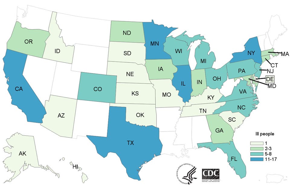 Minnesota and Illinois have reported the most cases of salmonella linked to raw turkey, with 17 and 16 cases each. Public health officials in California, New York and Texas have reported 13, 12 and 11 cases, respectively since the outbreak was first reported in mid-July.