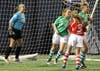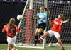 Mendez and Mulrooney of Holy Angels, Viera of Richfield play in the MSHSSCA Senior Classic Wednesday at Mall of America Field.