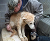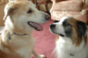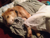 A couple of days later, after a long trip north, I got to meet Tom. He seemed like a nice enough guy and one of the first things he did was give me a bath. I'm not much of one for baths, it did feel nice to at least get most of the muck off of me. He took me home to meet his wife Shawn and a couple of his friends. Shawn fed me some hamburger and rice and then Tom set me to sleep in this real warm room on this comforter that had pillows all around me. I thought I was dreaming -- it was the best
