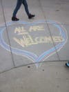Twenty students gathered in front of the school with chalk in hand, ready to convey messages of love, support, acceptance and hope in their school and community.