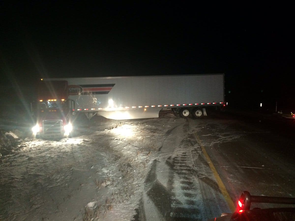 Earlier on Wednesday, a semi jackknifed on I-94, partially blocking the highway in Evansville, Minnesota.