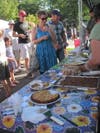 As soon as people saw Kingfield volunteers cutting up the baked goods they moved in, pressing closer to the booth. By 10:30, the designated start time for eating and judging, a line had formed. Each person's $5 judging fees were burning holes in their pockets.