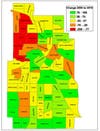With many homeowners either underwater on their mortgages, or in debt after losing significant amounts of money when the housing market collapsed having lost significant amounts of money when the housing market collapsed in 2008, the usual flow of young, childbearing families to the suburbs . Realtors confirm that most area homebuyers are “trading up,” from renting to their first home, but not rising beyond that. This, combined with less-well-studied trends in the improvement of the district's image, new condo developments, and a general increase in the city’s number of kids, have been pushing the seams of several district schools, highlighted in yellow on the map at right.