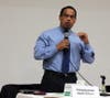 Speaking to a packed crowd at the in St Louis Park on Monday, Rep. Keith Ellison (DFL-MN) said a proposed constitutional amendment requiring voters to present government-issued IDs at polling places could cost local governments millions.