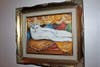 Artists were asked to stick to the theme of April Foolishness, but beyond that, freedom of expression reigned. Some artists used real life as inspiration. For her painting “Reclining Nude,” Brenda Moses wrote in her statement, “Reclining Nude depicts my cat Oscar in a typical human pose. This painting evolved after Oscar repeatedly placed himself in this frame on my dining room table. It’s as though he begs to be subject matter!”