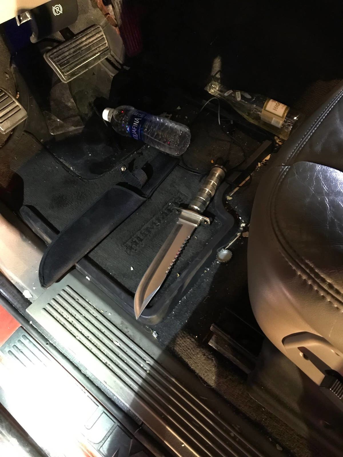 A large knife was also located at his feet in the vehicle, according to police.