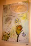 And she means it. Thomson allows her paintings to direct themselves without question or critique. With a stream of consciousness style of painting, Thomson finds that hills turn into horses, volcanoes turn into trees or hoop skirts. She starts a work without any idea of what it will become, and often surprises herself at the end.
