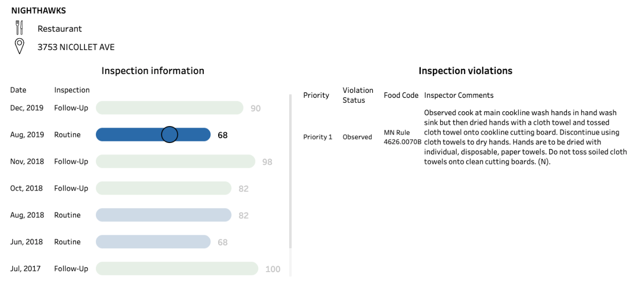 MINNEAPOLIS — Anyone interested in Minneapolis food inspection reports can now find them online. The food inspection lookup tool can sort information by business name or address, location, inspection date, and business category (restaurant, grocery or institution).