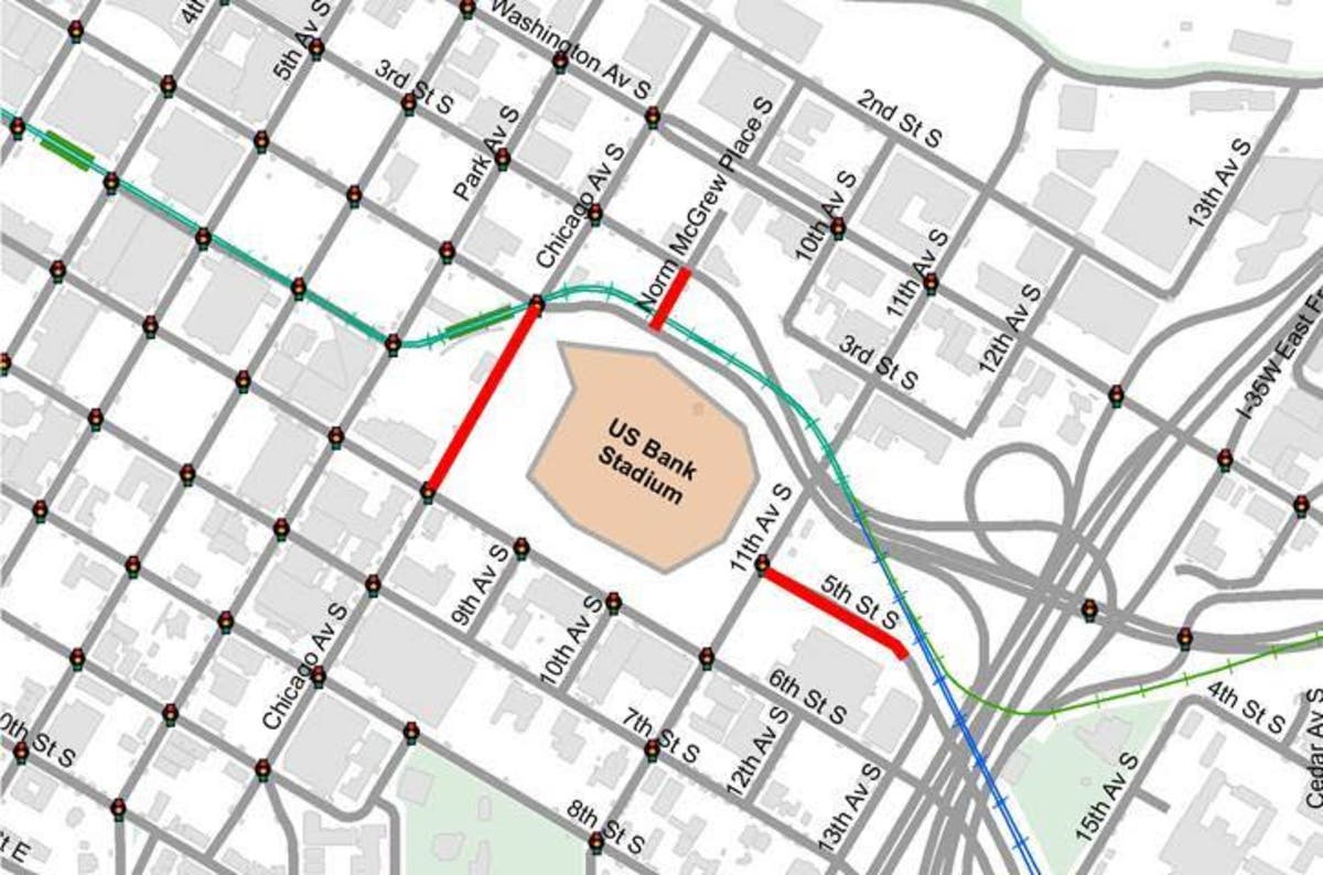 MINNEAPOLIS, MN — Minneapolis began the first phase of street closures around U.S. Bank Stadium Tuesday morning in preparation for Super Bowl 52 on Sunday, Feb. 4. The Super Bowl is tentatively scheduled to start 5:30 p.m. on Feb. 4.
