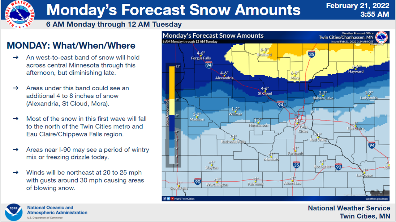Here's the latest information on the snowstorm set to arrive in the Twin Cities metro area Monday night.