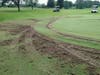 Photos showed deep, large tire tracks that completely tore up the grass.