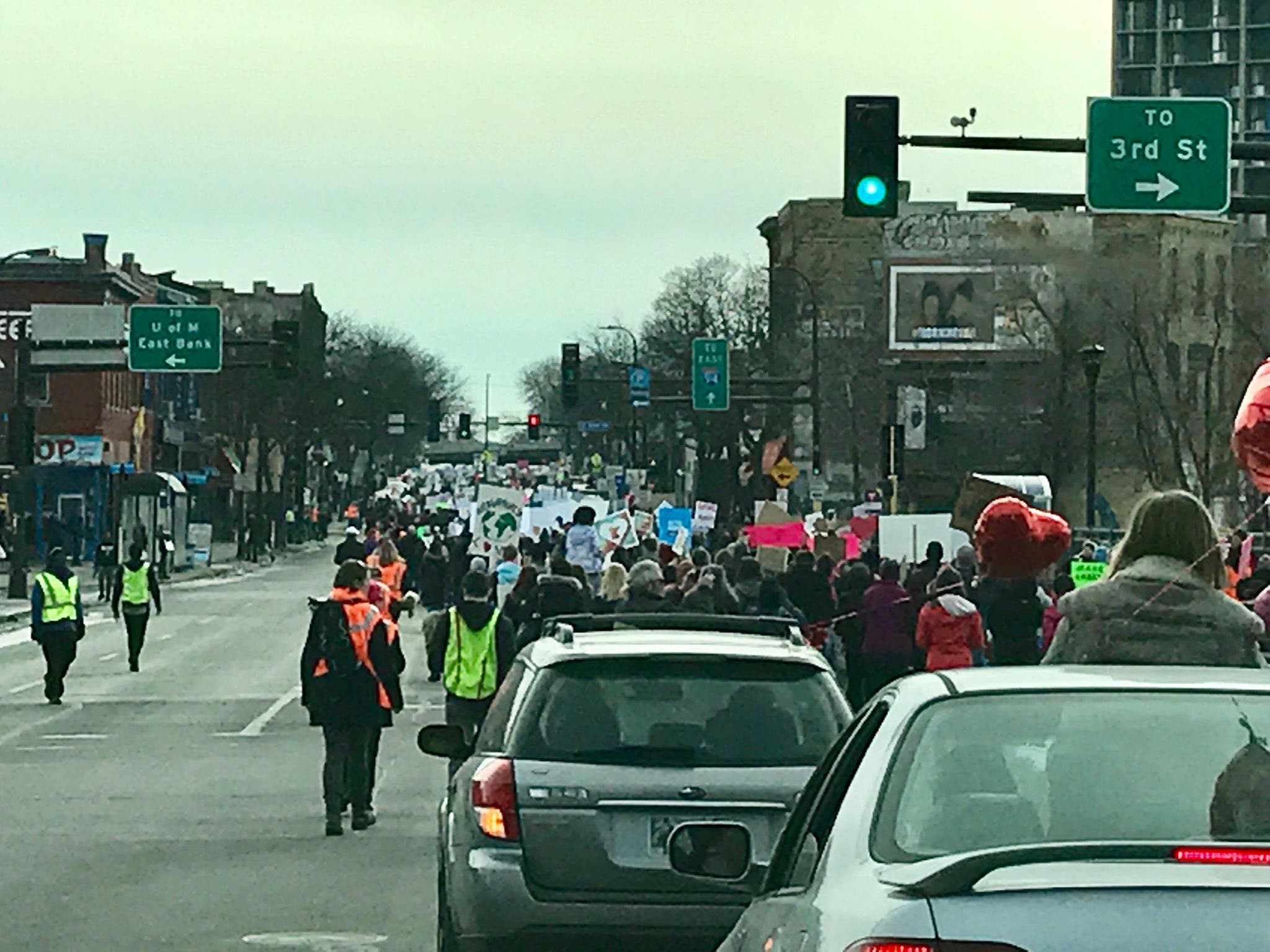 A protest group of about 2000 people demonstrating in support of immigrants and refugees began marching in Minneapolis Saturday afternoon.