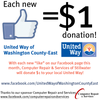 This month only, if you "like" our Facebook page, a $1 donation will be made to your local United Way of Washington County-East! Our Facebook page will keep you up to date with the activities happening at UWWCE, and help you find ways to get involved in our community. https://www.facebook.com/UnitedWayofWashingtonCountyEast