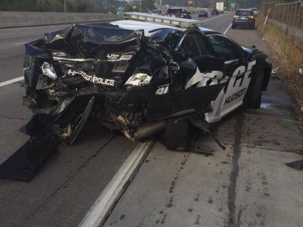 The squad car, a Ford Taurus, was on the Hudson Bridge with its emergency lights activated, according to the Minnesota State Patrol. A Ford pickup struck the rear of the unoccupied squad car causing it to cross all lanes of traffic and collide with the right wall.