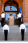 Law enforcement officers, elected officials, judges, city and county workers and residents paid respect to those who have lost their lives in the line of duty Monday at the Historic Courthouse in Stillwater.