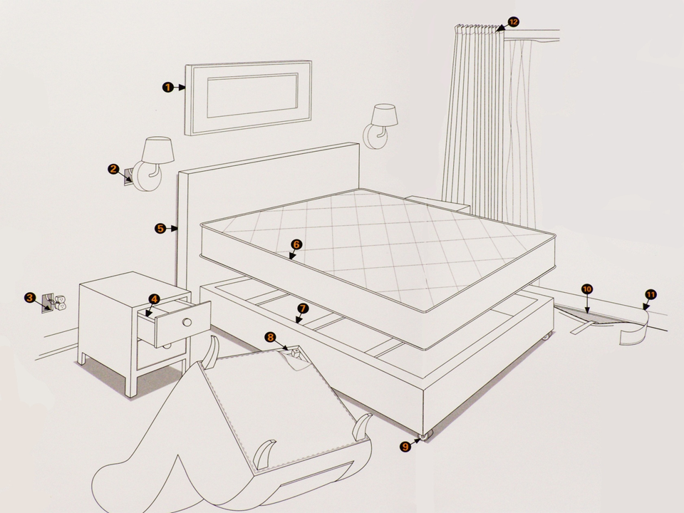 - Thoroughly inspect the entire hotel room with a flashlight before unpacking. Look behind the headboard, under lights and inside dressers, drawers, sofas and chairs for signs of bed bugs.