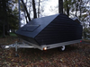 1996 Sled Bed enclosed aluminum tilt trailer, dark gray, large front access door, 3rd wheel, ski guides and traction bars for easy load/unload, spare tire on rim ($1600).