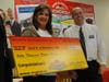 Hanson on Thursday was presented a $50,000 check from Roundy’s Supermarkets as part of a Monopoly-style promotion with Rainbow Foods and other grocers. (It's similar to the popular version.)