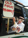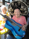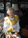 Abundance on our BUS at the Parade took form in more than just a bunch of old seniors and decoration. What the elderly brought to Woodbury was the virtues of life…love, hope, faith, justice, fortitude, restraint, Punk Rocker Bess, Cleopatra (Marjorie), Gansta Brawl John, Hot Lips Joan, Helen Van Allen the Tornado (Princess), 100 year old Ed Lidell (King of WSL) Queen Babe of WSL, Captain Else, Lampshade Oline, French painter Mavis, ole lady bus driver Kristina. We even housed our prison escapee Woodbury Senior Living volunteer bingo caller for the past 4 years, Wendy …Our bus was full of witty and compassionate residents at the average age of 95!!! All uncomplicated and full of surprises.