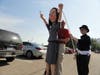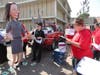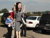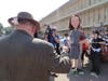 Two MNA members dressed as “Wall Street Fat Cats” whispered things in her ear and occasionally showered the figure with plastic coins and fake bills.