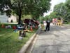 Crews were still cleaning up the scene at a little after 3 p.m. on Tuesday. Some firefighters were drinking water and Gatorade and sitting in front of a fan set up outside.