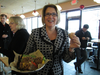 This is not the case in Jake’s WayBack burgers – I took only 2 photos of the Mayor eating her burger and one shot of the eggnog milkshake. If you are nostalgic for a hamburger and not a ‘thin grey thing’, you can look forward to a tasty, hand-made juicy WayBack Burger served with a smile from staff. They have burgers of the month. This month features a Brisket Burger, with American Cheese, and Wayback Gold Sauce. For Thanksgiving their specialty was a turkey burger with cranberry relish on a great bun. Homemade chips were tasty too. There’s a couple of salads to choose from, and a children’s menu is offered as well.