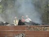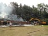 At about 9:45 a.m. the house was still smoking and crews were putting water on the structure.