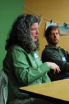 Dana Jackson, senior program associate at the Minnesota-based Land Stewardship Project, and two CSA farmers—Chris James, the owner of Fresh Earth Farms in Denmark Township and Aaron Blyth, the farm manager of Big River Farms in Marine on St. Croix—hosted a discussion about CSA farming at the Woodbury Tuesday night.