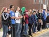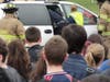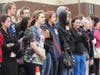 With tears in their eyes, students hugged and supported each other Friday afternoon after two of their classmates were driven away in hearses.