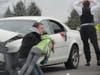 One of the student actors was put through field sobriety tests and taken away in handcuffs. Other students were placed on stretchers and transported to waiting ambulances.