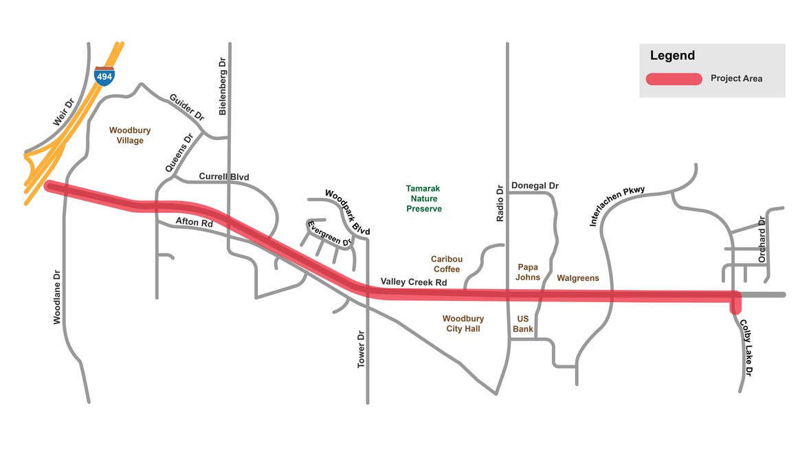 WOODBURY, MN — Xcel Energy and the city of Woodbury have announced details regarding its project to replace about 2.5 miles of natural gas pipeline along Valley Creek Road between Interstate 494 and Colby Lake Drive. Residents should expect periodic, temporary lane and intersection closures along Valley Creek Road throughout the project.