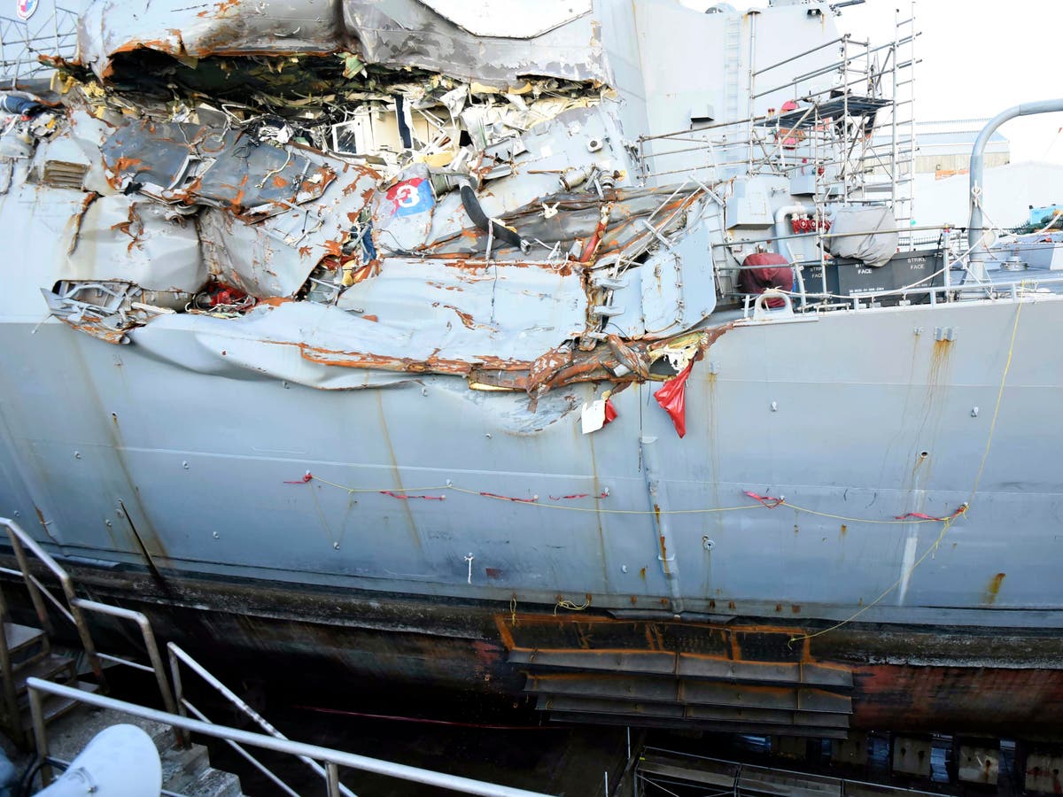 The U.S. Navy destroyer was damaged in a June 17 crash with a Philippine-flagged container ship that left seven sailors dead.