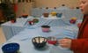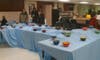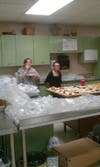 While it was possible to take your bowl and dinner "to go," the students offered the option of "Dinner and a Movie." They decorated the cafeteria with a football theme, darkened the lights, and showed the film, "Friday Night Lights" on the big screen. The placemats, designed by commercial arts students, included facts on hunger in Missouri, and on the Affton Christian Food Pantry.