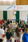 Before the can goods that were collected were donated to Feed My People the Faith Families had a contest to see who could build the best can castle. The castles were judged by Mrs. Fund. Although it was tough to decide there was a winner. The winning group was supervised by Mr. Spieler, the schools principal.