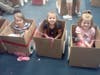 Also, we had our first parent involvement activity on Friday September 7 and it was a huge success. It was a drive in movie night in the multi purpose room or "rainbow room" as the kids call it. Children used their imagination and creativity and turned moving boxes into cars using paper plates, yarn, pom poms, glue, markers, etc. We had 53 kids in cars and almost 100 people total. Children attentively watched Toy Story 2 and ate popcorn! A fun time was had by all. Scroll down to see pictures from the event.