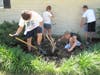 The first project entailed a garden/picnic area behind the school which is used by teachers and staff for lunch/break time. Prior to the storm, a 100+ year old tree sat in the middle of the garden; but then the tornado hit and the tree fell on the school and church damaging the roofs. From the removal of the tree, which also damaged the garden, and the fact that Immanuel was busy taking care of tornado victims, this area became overgrown with weeds, dead bushes and trees, and leftover tree stumps. After two days the Salem Youth had the entire garden/break area transformed with new bushes, trees, a variety of plants, and mulch. Another Project entailed the Parsonage; which needed a complete overhaul of the landscaping as well as some painting. Salem and Joplin Youth again worked together to transform the parsonage by removing tree stumps, weeds, and wood and by spreading new mulch, trimming bushes and adding a fresh coat of paint in some areas. No signs of the tornado was left at this point to the church, school, and parsonage.