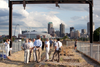 The District purchased the abandoned railroad trestle, which spans over Interstate 70 just two blocks north of where the new Mississippi River Bridge now crosses, in 2004 for $1.5 million. The elevated rail was built 100 years ago for electric-powered passenger trains that connected downtown to the metro east. Construction of the elevated park will likely be a combination of public and private funding and will be built in phases as funding becomes available. Last summer, Great Rivers Greenway launched the “Friends of the Trestle” organization to assist in raising awareness of the project, soliciting donations and ensuring long-term conservation of the Trestle once it is completed.